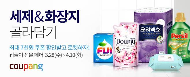 '카테고리 할인관'은 2만원, 3만원 이상 제품 구매 시 각각 4000원, 7000원 쿠폰 할인을 제공한다. 주방·청소세제는 최대 30%, 세탁세제와 화장지 최대 10% 즉시 할인 받을 수 있다. '브랜드관'에서는 P&G, 피죤, 크리넥스, 코디, 모나리자, 무궁화, 애경 등 총 15개 브랜드 상품을 선보인다.