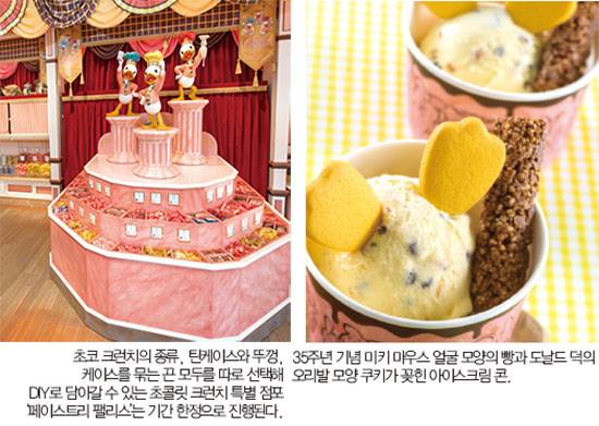 도쿄디즈니랜드에서 가장 인기 있는 기념품은 1986년 출시 이후, 도쿄디즈니랜드 대표적인 기념품 중 하나가 된 초콜릿 크런치를 테마로 한 ‘페이스트리 팔레스’ 크런치 박스다. 6가지 초콜릿 크런치 맛 중 선택해 마음에 드는 캔, 뚜껑, 리본 종류를 골라 각자의 기호에 맞는 DIY 초콜릿 크런치 캔을 만들 수 있다. 스위트 하트 카페에서 산 미키 마우스 얼굴 모양의 빵과 도날드 덕의 오리발 모양 쿠키가 꽂힌 아이스크림 콘을 들고 다음 어트랙션을 찾아 나선다. 디즈니랜드에서 중요한 것은 동선 관리. 자칫하면 일행을 잃거나 먼 거리를 돌아가야 할 수 있으므로, 본인이 이용하고자 하는 어트랙션이나 이벤트 시간과 장소를 잘 확인하는 것이 좋다.