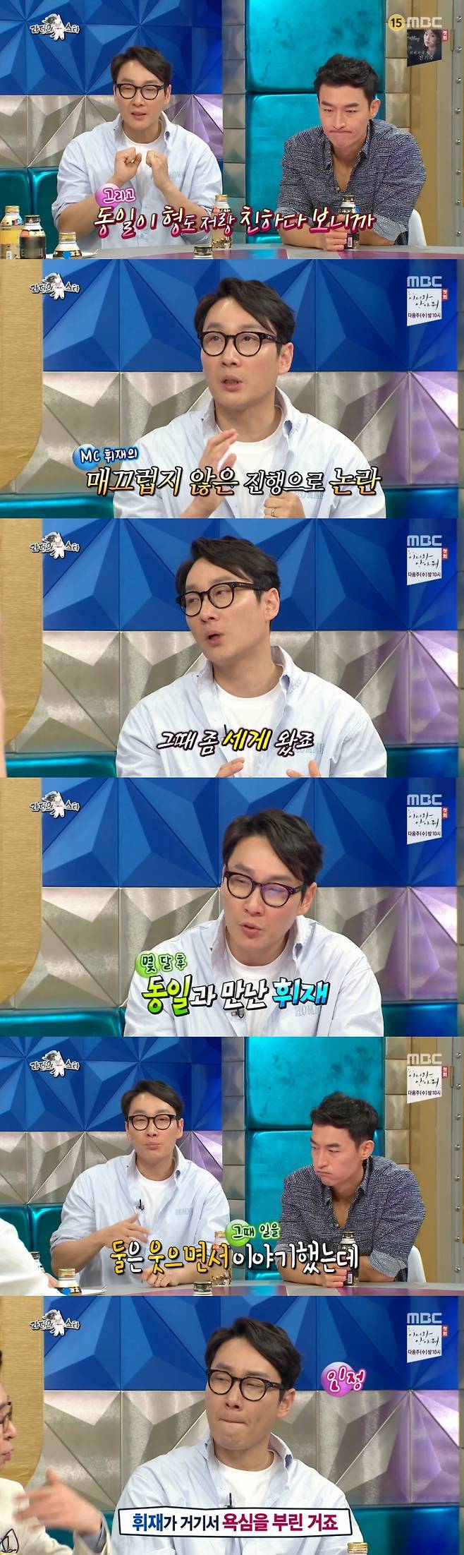 이어 "그래서 내가 갔다. 그랬더니 정말 1초의 마도 없이 지국장님이 평생 내가 들을 욕을 다 들은 것 같다. '너 미쳤구나', '누가 그래서 이런 거냐. 너 여기서 당장 전화해'라고 했다. 그래서 김경민 형에게 전화했더니 형이 '네 안녕하세요. 이휘재 씨 안녕하세요'라고 했다. 어제 날 만난 거 기억 안 나냐고 했더니 '제가요?'라고 하더라"고 덧붙였다. (사진=MBC '라디오스타' 캡처)