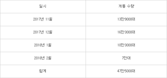 [표] 아이폰X 국내 출시 이후 4개월간 개통 수량 (1000대 기준)