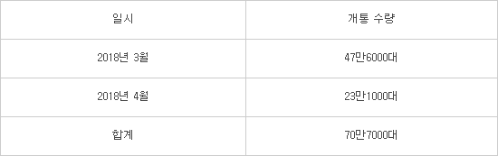 [표] 갤럭시S9 국내 출시 이후 2개월간 개통 수량(1000대 기준)