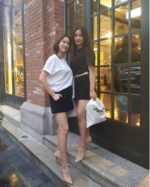 안리원과 이혜원은 비슷한 스커트에 누드톤의 구두를 똑같이 신고 있다.
