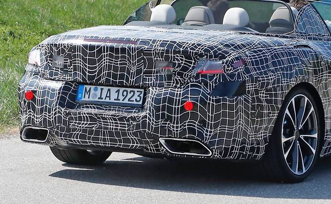 트렁크 덮개는 뒤로 상당히 튀어나왔다. 2000년대 중반 등장했던 6시리즈 컨버터블의 엉덩이가 연상된다. 번호판은 사각형으로 패인 자리에 위치했다. 앞서 유출된 이미지에는 아래로 내려갈 수록 좁아지는 형상의 번호판 자리가 보인다. 아무래도 디자인 유출을 방지하기 위해 범퍼 위에 위장용 패널을 덧댄 것 같다.
