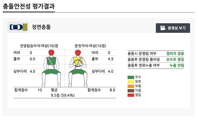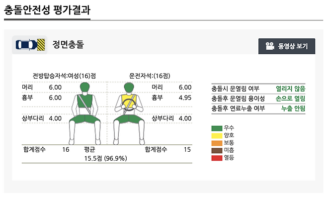 안전은 스파크의 압승이다. KNCAP의 점수를 기준으로 보면 스파크는 종합평가 87.7점으로 1등급, 모닝은 77.1점으로 3등급이다. 특히 정면충돌 테스트에서 큰 차이가 났다. 스파크는 16점 만점 중 15점을 받으며 우수한 안전성을 뽐냈다. 반면 모닝은 더미의 머리 부분을 안전하게 지키지 못했다. 결국 정면충돌 테스트에서 8.9점에 머물렀다.