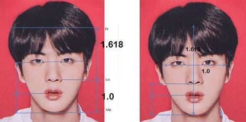 얼굴에서 귀 사이의 거리가 1일 때, 머리카락 라인과 턱 사이의 거리는 1.618인 것이 황금비율이라는 의미로 이 의사는 "진의 경우가 그러다. 환상적"이라며 "완벽한 얼굴 대칭을 가지고 있다"고 전했다.