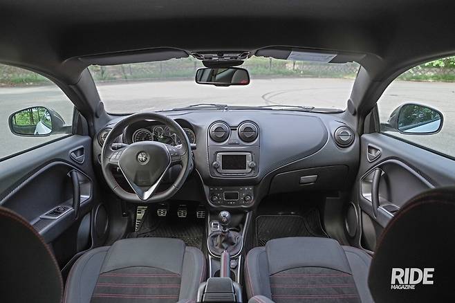 시트에 앉으면 알칸타라 스포츠 시트가 몸을 감싼다. 코너링에서도 몸을 잘 잡아주는 것이 역시 이탈리아 차 답다. 이밖에도 스포츠 스티어링휠과, 알루미늄 페달이 적용됐다. 대시보드와 도어패널은 카본룩으로 되어있다. 실제로 알파 로메오는 차량에 알루미늄과 카본섬유를 사용해 경량화에 적극적이다. 본네트나 트렁크, 지붕 등 경량화가 가능한 곳이라면 알루미늄, 또는 카본섬유를 적극적으로 사용한다. 그만큼 무게가 가볍게 나오는데, 덕분에 안전에 깐깐하기로 소문난 미국에서는 각종 보강을 거쳐 100여 kg 이상 무게가 차이나기도 한다고. 만일 미토에서 경량화 할 만한 것을 찾는다면 뒷좌석을 제거하고 앞좌석은 카본 버킷시트로 교체하는 것 정도일까.
