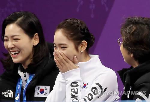 (강릉=연합뉴스) 박동주 기자 = 21일 강릉아이스아레나에서 열린 2018 평창동계올림픽 피겨스케이팅 여자 싱글 쇼트프로그램에서 대한민국 최다빈이 점수 발표에 밝은 표정을 짓고 있다. 2018.2.21