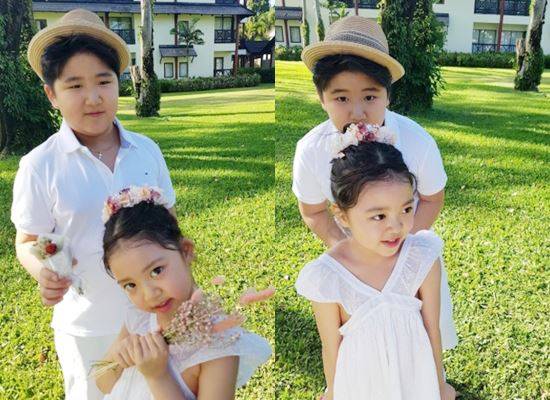 공개된 사진에는 정시아-백도빈 부부의 자녀 준우, 서우가 흰색 옷으로 맞춰입고 카메라를 응시하는 모습이 담겼다. 하얀 원피스에 앙증맞게 꽃을 손에 쥔 서우의 '완성형' 미모가 단연 인상적.