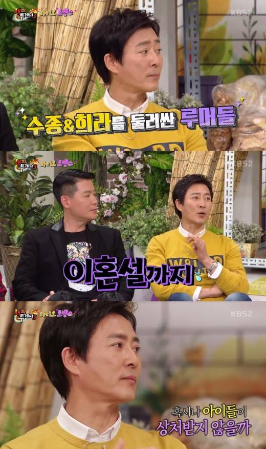 이렇듯 연예계 대표 사랑꾼이자 남자들의 공공의 적으로 이름이 높은 최수종이나 그 역시 루머를 피할 순 없었다. 최수종은 “내가 하희라를 때리고 이벤트를 해준다. 이혼도장을 찍은 걸 봤다. 계속 이런 루머가 나돌더라”고 한탄했다. 아이들이 자라면서 상처를 받진 않을까 걱정이라고.