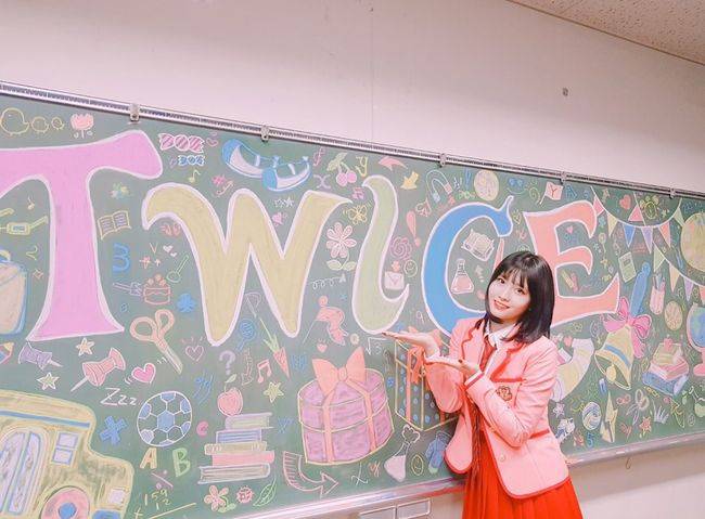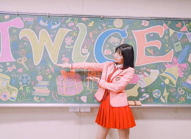 그룹 트와이스의 모모가 깜찍한 교복 인증샷을 공개했다.