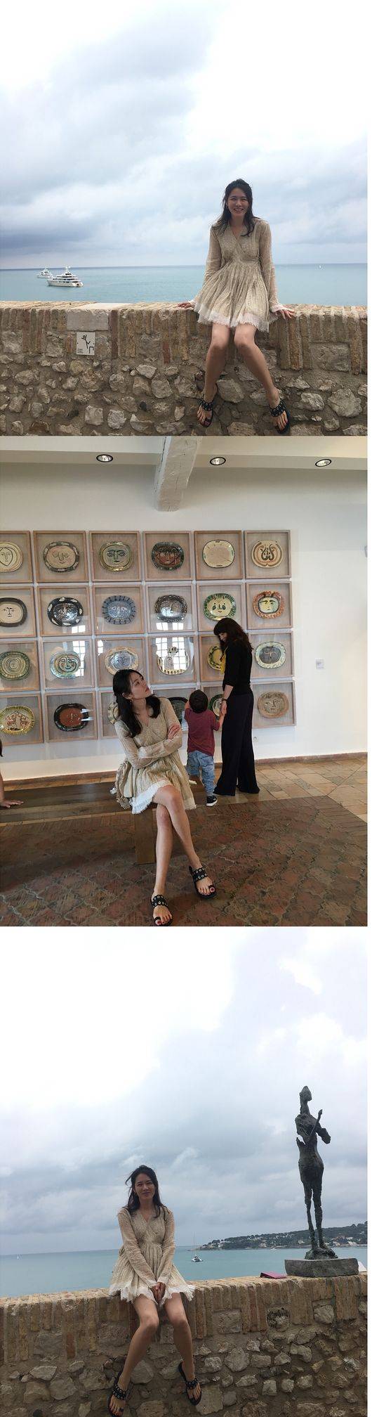 공개된 사진 속에는 원피스 수영복을 입은 손예진이 배 위에서 사진을 찍고 있는 모습과 바다를 배경으로 포즈를 취하는 모습, 전시를 관람하는 모습 등이 담겨 있다.