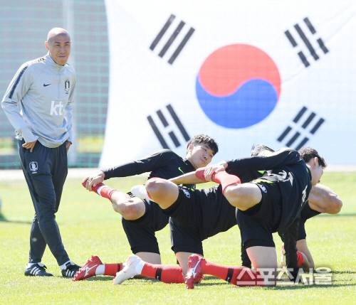 차두리 코치 등 축구대표팀의 선수들이 14일 오전(현지 시간) 러시아 상트페테르부르크의 로모노소프 지역에 위치한 스파르타크 스타디움에서 훈련을 소화하고있다. 2018.06.14. 상트페테르부르크(러시아) | 김도훈기자 dica@sportsseoul.com