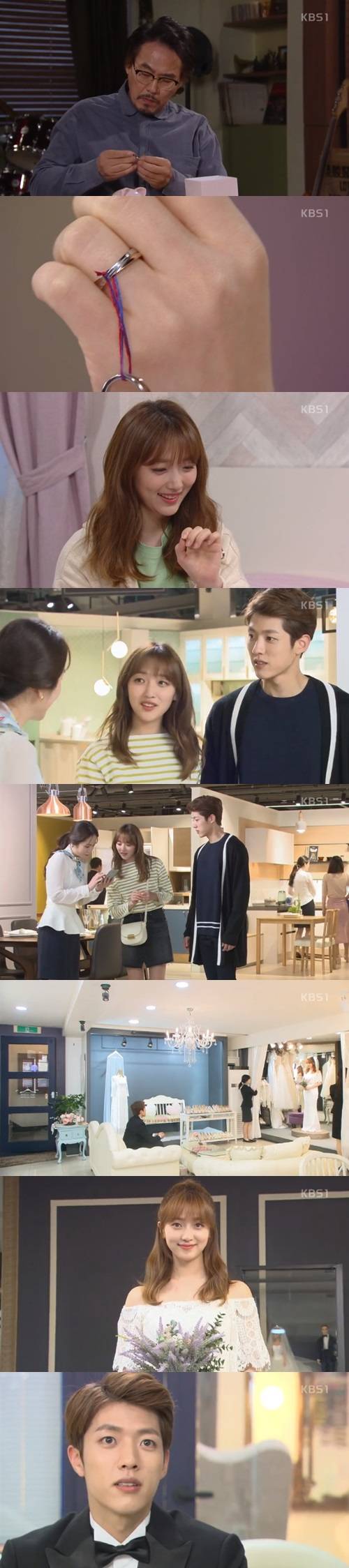 이후 이날 방송말미 홍석표 길은조는 결혼준비에 박차를 가했다. 두 사람은 함께 인테리어 업체를 찾아가는가 하면 턱시도와 웨딩드레스를 입어봤다. 홍석표는 길은조의 웨딩드레스 차림에 눈을 떼지 못했고, 이어진 예고편을 통해서는 두 사람의 결혼식이 그려졌다. (사진=KBS 1TV ‘미워도 사랑해’ 캡처)