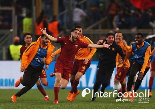 [인터풋볼] 이명수 기자= AS로마가 기적의 4강 진출에 성공했다. 1차전에서 1-4로 패했던 로마는 홈에서 바르셀로나에 3-0 승리를 거두며 원정 다득점으로 4강 진출에 성공했다.