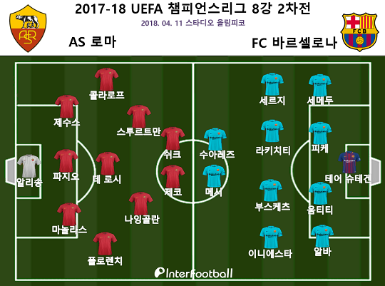 로마는 11일 새벽 3시 45분(한국시간) 이탈리아 로마의 스타디오 올림피코에서 열린 2017-18 시즌 유럽축구연맹(UEFA) 챔피언스리그(UCL) 8강 2차전 바르셀로나와의 홈경기에서 막강 화력을 폭발시키며 3-0 승리를 거뒀다.