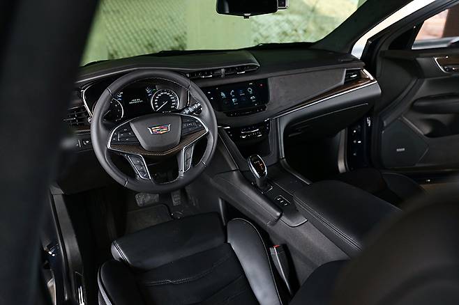 실제 캐딜락 CT6와 비교를 한다면 쉽게 그 차이를 파악하기 어려울 정도다. XT5는 대신 대시보드 상단에 추가적인 패널을 얹어 더욱 다이내믹한 감성을 연출했다. 다만 새롭게 디자인된 4-스포크 스티어링 휠이 다소 크게 느껴져 조금 부담스러웠다.
