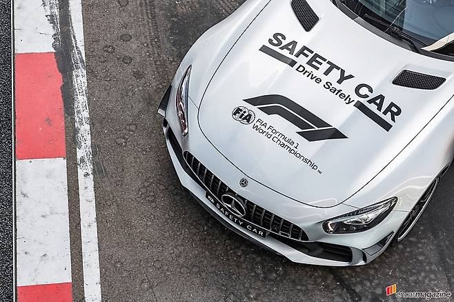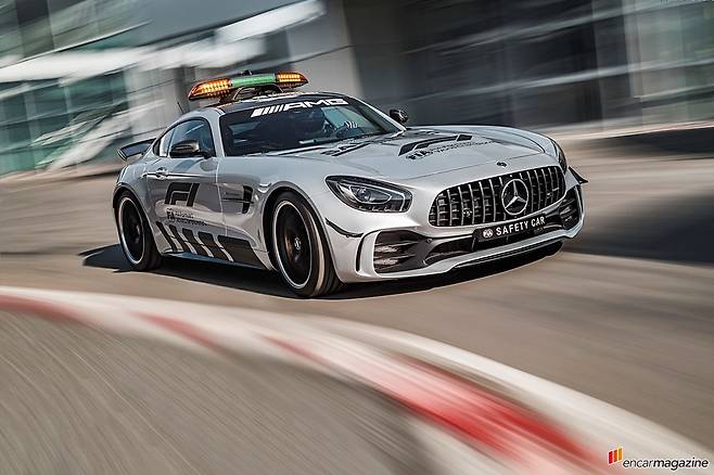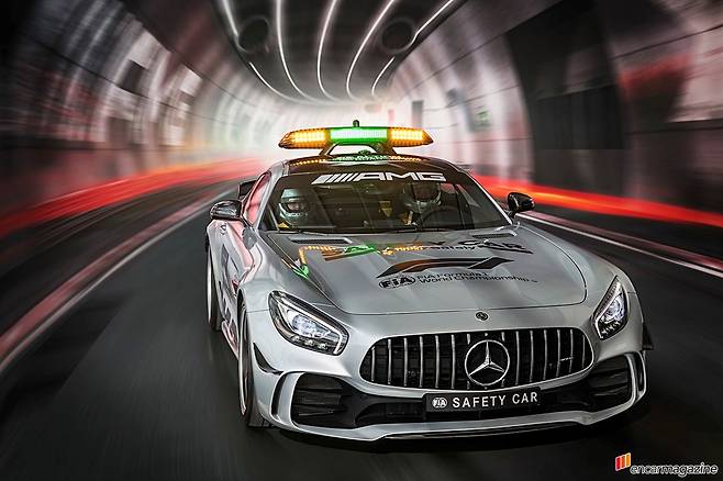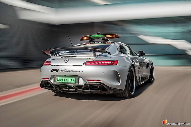 2017 F1 시즌에는 AMG GT S가 세이프티카로 뛰었고 올해는 메르세데스-AMG GT R로 임무를 교대한 것이다. 메르세데스-AMG GT R은 독일 뉘르부르크링에서 주된 개발이 진행된 터라 ‘녹색괴물’이라는 별명으로 유명할 뿐 아니라 트랙에서 모든 실력을 발휘할 수 있는 차이기도 하다.