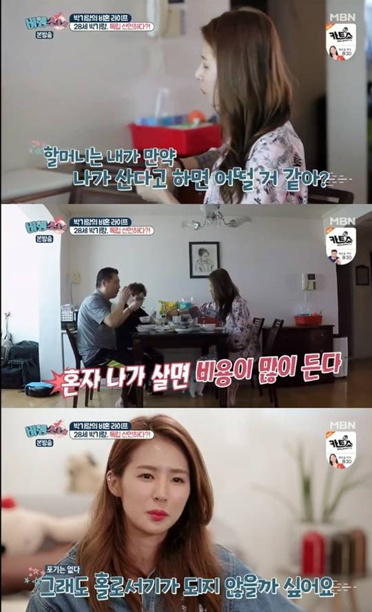 이에 박기량은 "어떤 의미에서 걱정을 하는 줄 아는데 그래도 나도 이제 나이도 있고 혼자 살아 보고 싶다. 좋은 경험일 거 같다. 당연히 겁은 난다"고 속마음을 전했다.