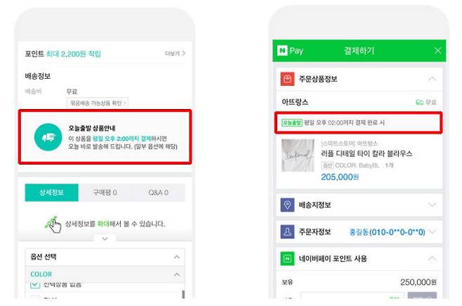 판매자가 스마트스토어 상품 등록 시 '오늘출발'을 지정하면 상품명과 상세설명 페이지 등에 배송형태가 노출된다.