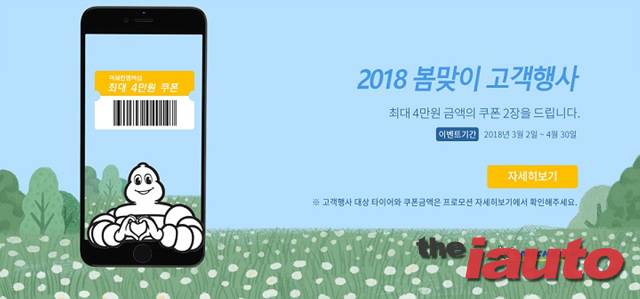미쉐린코리아(대표 이주행)가 3월 2일부터 4월 30일까지 두 달간 봄맞이 트럭 타이어 고객행사를 실시한다. 기존 미쉐린 멤버십 및 신규 회원들은 전국 90여개의 미쉐린 멤버십 지정 대리점에서 미쉐린 트럭 타이어 제품 구입 시 쿠폰을 사용하여 최대 8만원의 할인 혜택을 얻을 수 있다.