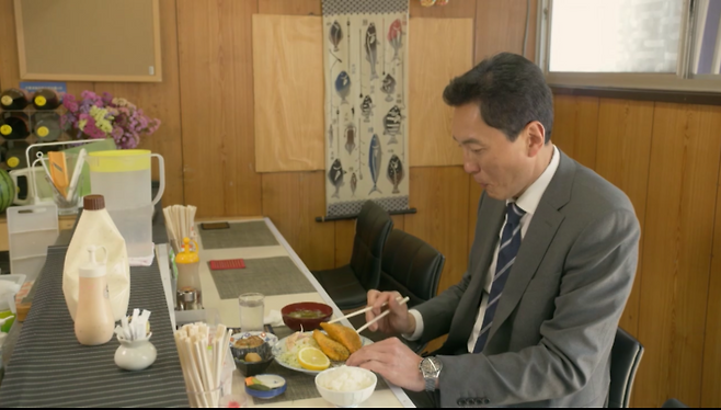영업직 무역상, 40대 중년 남자가 일 끝난 후 근처 맛집에 들러 홀로 식사를 한다.