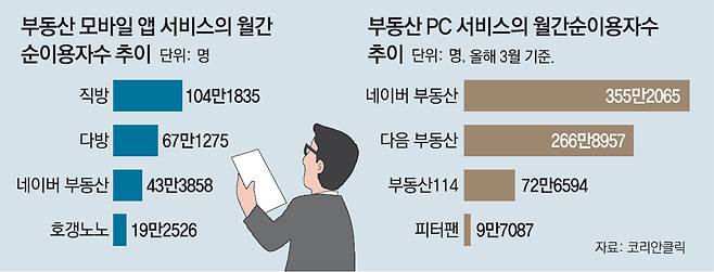 직방의 공격적인 행보에 부동산 서비스 전통 강자인 네이버는 긴장할 수밖에 없게 됐다. 네이버 부동산은 모바일 앱 부문에서는 3위(MAU 43만3858명)지만 PC 서비스 부문에서는 압도적인 1위(MAU 355만2065명)를 점하고 있다.