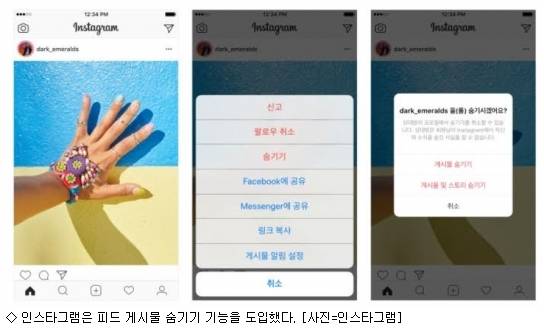 인스타그램, 피드 게시물 숨기기 기능 도입