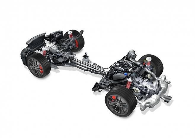 RR은 단점 투성이다. 엔진이 뒤쪽에 얹히므로 무게가 뒤로 집중된다. 따라서 무게가 실리지 않는 앞쪽 타이어가 제 그립을 내지 못해 코너에서 버벅거리기 쉽다. 생산 단가 면에서도 불리하다. 엔진과 변속기, 구동축, 배기시스템까지 뒤쪽에 꽉꽉 채워야 하는 탓이다. 그나마 장점은, 가속할 때 리어 타이어의 그립을 이끌어내기 가장 유리한 방식이라는 것.