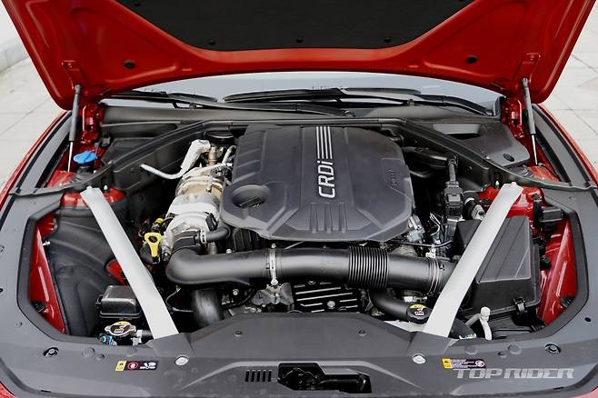 일상주행에서 엔진회전을 크게 높이지 않아도 여유로운 가속은 디젤 터보차의 특권이다. G70의 경우 가솔린 모델에도 터보차저가 적용돼 저회전에서의 가속이 빠른데, 그와는 다른 감각이다. 점진적으로 꾸준히 가속되면서도 연비하락은 적다.