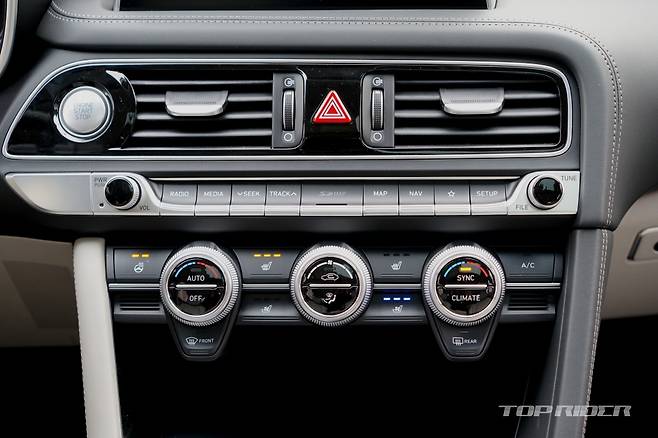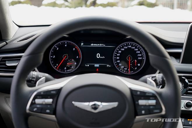 운전석에서의 시트포지션은 국산차 중 가장 뛰어난 수준이다. 낮은 시트높이와 넓은 전방시야, 넉넉한 사이즈의 시트와 세부적으로 조절이 가능해 철저히 운전자에게 집중했다. 각종 버튼류의 조작감도 우수하다. 다만 스티어링 휠은 다소 미끄럽게 느껴진다.