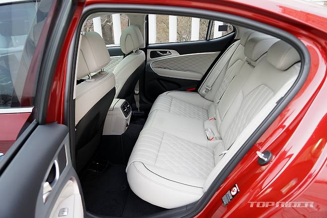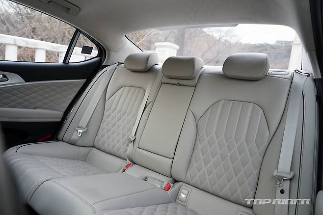 2열은 비교적 좁게 느껴진다. 최종 단계에서 낮아진 루프 디자인으로 인해 희생된 것으로 보여진다. 위안이라면 엉덩이가 닿는 부분의 면적이 동급에서 가장 넓은 수준이고, 등받이도 완만하게 누워있어 편안한 자세가 만들어진다. 어쨌든 시각적으로는 좁다.