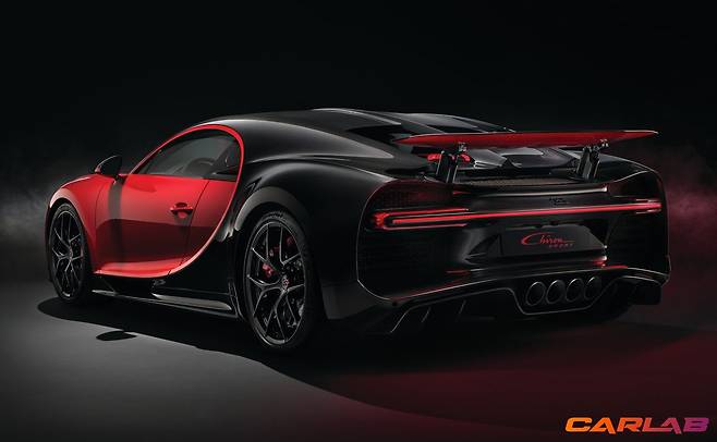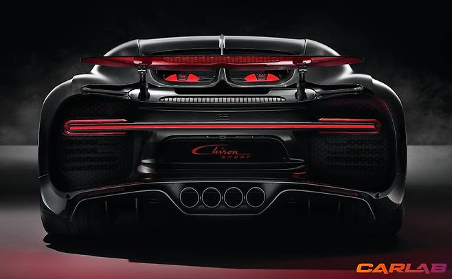 특히 카본 와이퍼 암은 양산차 중 최초 적용이다. 베이론의 와이퍼와 비교하면 77%가 가벼워져 1.4kg을 줄였다. 부가티는 와이퍼도 최고구나! 사다리꼴 모양의 기존 배기구도 4개의 원형으로 변경해 무게를 덜었다.