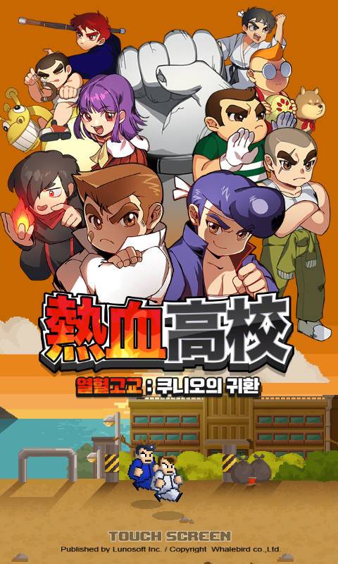 '쿠니오의 귀환'은 웨일버드(대표 배경국)가 개발하고 루노소프트가 서비스한다. 복고풍 느낌과 닌텐도 게임전용 8비트 컴퓨터 원작 향수를 그대로 재현한 방치형 RPG다. 열혈고교는 1986년 콘솔 아케이드 액션으로 발매한 '열혈경파 쿠니오군'으로 시작해 1990년대까지 다수 히트작을 배출한 유명 IP다.