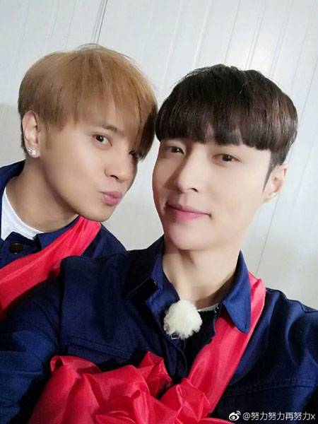 사진에서 레이는 대만 가수 겸 배우 나지상(뤄즈샹)과 얼굴을 맞대고 다정하게 셀피를 촬영하고 있다. 바가지 머리로 변신한 레이는 풋풋하고 순수한 소년의 모습을 보였다.