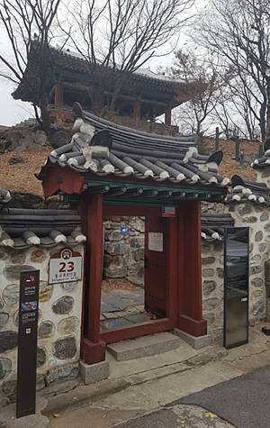 입구로부터 이어진 돌계단을 따라 정자 앞에 서면 ‘신발을 벗고 오르라’는 안내판이 있다. 정자에 오르자 과연 한강의 시원한 전경이 눈앞에 아스라이 펼쳐진다. 흠이라면 강변을 따라 만들어진 강변북로를 질주하는 차량들이 내뿜는 소음과 매연이다.
