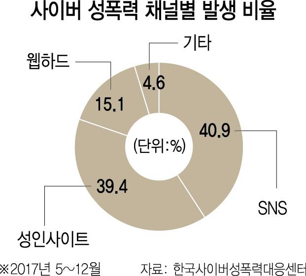 사이버 성폭력 장소 1위는 SNS 사이버 성폭력 장소 1위는 SNS"와, 저 사람 누구죠. 나이는요." 3일 저녁 '19 영상 공유방'이라는 카카오톡 오픈채팅방에 영상이 올라오자 쉴새 없이 이뤄지던 대화가 찬물을 끼얹은 듯 5분 가량 멈췄다.