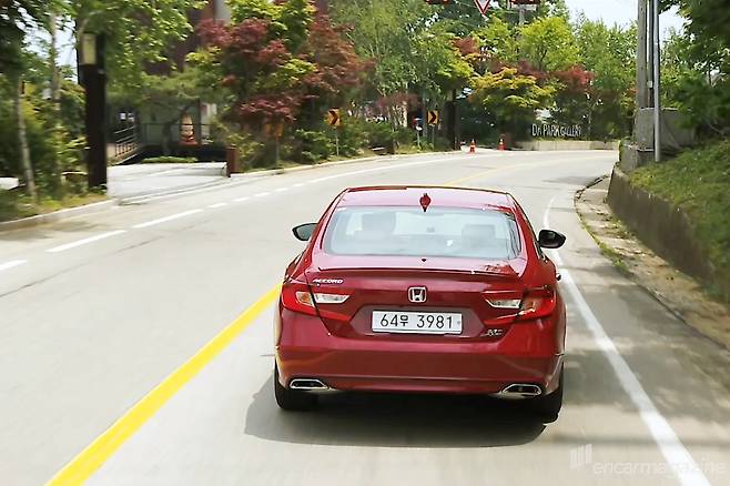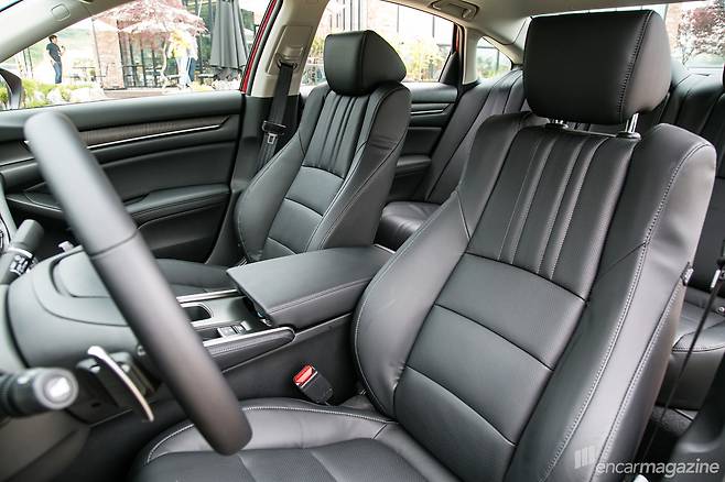 대략 편도 60km 구간을 운전했으며, 돌아오는 길에는 뒷자리에 앉았다. 결론부터 이야기하면 두 시트에서 평가하는 어코드는 극과 극으로 갈렸다. 고출력을 바탕으로 드라이빙 퍼포먼스를 지향하는 등급인 만큼 유일하게 액티브 컨트롤 댐퍼 시스템(Active Control Damper System)도 탑재됐다. 주행 모드와 실시간 노면 정보에 따라 감쇠력을 변화시킨다. 여기에 19인치 휠도 무시할 수 없다. 운전하는 내내 차는 기민하게 반응했고, 노면을 옹골차게 웅켜 쥐었다. 다양한 속도 영역을 재빨리 오르내려 운전의 스트레스를 확연히 줄였다. 오히려 재미를 안겨줄 정도.