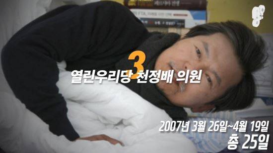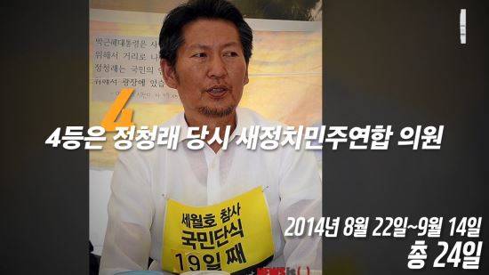정청래 당시 새정치민주연합 의원(4위)는 세월호특별법 통과를 주장하며 24일 동안 곡기를 끊었죠.(2014년 8월 22일~9월 14일, 총 24일)