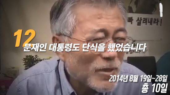 당시 새정치민주연합 의원이었던 문재인 대통령도 단식을 했었습니다. 문 대통령은 2014년 8월 세월호특별법의 국회 통과를 촉구하며 10일간 광화문광장에서 단식했습니다.(12위/2014년 8월 19일~28일, 총 10일)