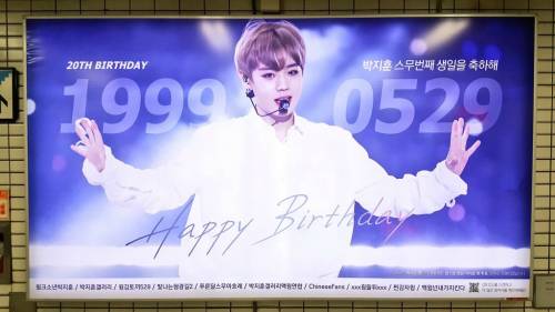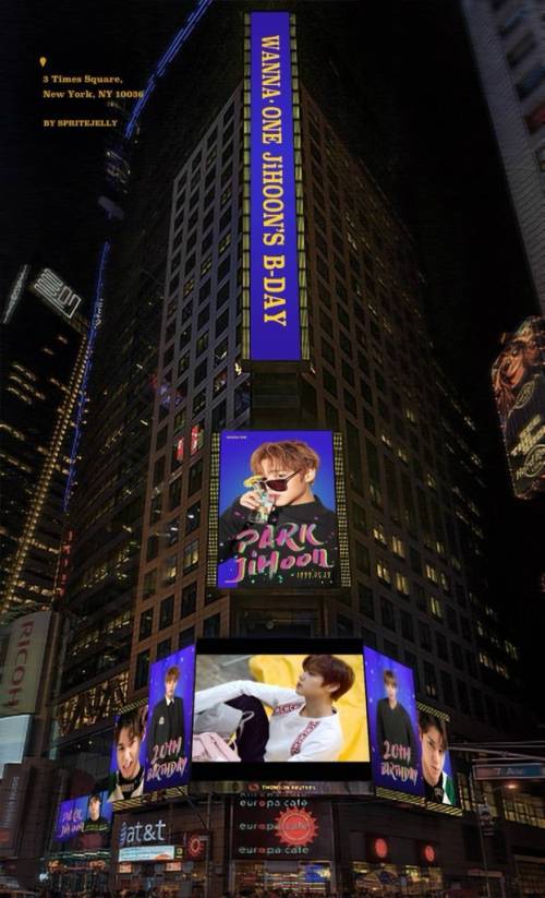 팬들은 미국 뉴욕 타임스스퀘어 옥외 전광판에 박지훈 생일 축하 광고를 게재했다.