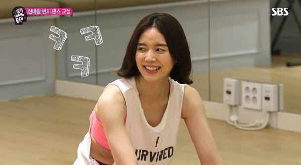 이날 '번지 댄스'라는 독특한 운동을 하기 위해 번지 댄스 교실을 찾은 강세정은 운동으로 다져진 몸매를 자랑했다.