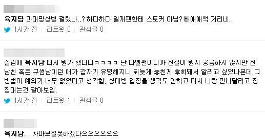 "육지담 과대망상병 걸렸나?", "실검에 육지담 떠서 뭔가 했더니. 전남친 혹은 구썸남이던 애가 갑자기 유명해지니 뒤늦게 놓친게 후회돼 알리고 싶었나본데 그 방법이 예의가 너무 없다고 생각함", "육지담. 차마 보질 못하겠다"라며 육지담을 강하게 비판했다.