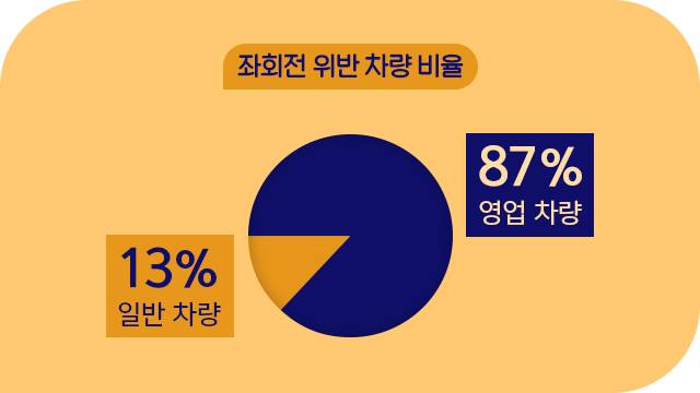 앞서 닷새동안 관찰카메라를 돌려보니 좌회전 신호 98번에 71대가 법규를 위반했다. 누가 위반을 많이 했는지 따로 분석해봤다. 위반 차량 중 87%가 버스, 택시 등 영업용 차량이었다. 우연이라고 하기엔 너무 많다. 87%. 과하다. 기사님들에게 직접 들어봐야겠다.