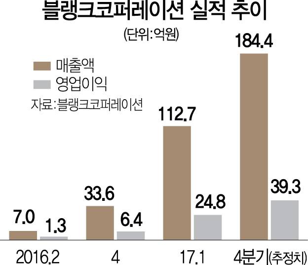 16일 투자은행(IB) 업계에 따르면 블랭크코퍼레이션은 1,000억원 안팎 구주 매각을 위해 기관투자가들과 협상을 벌이고 있다. 매출 성장률이 높고 이익도 양호해 기업가치는 최고 5,000억원 정도로 평가받고 있다. IB 업계의 한 관계자는 “아직 지분 거래가 많지 않아 기업가치는 천차만별이지만 실적 성장세가 높고 이익도 좋아 몸값을 높게 받을 수 있다”고 설명했다.