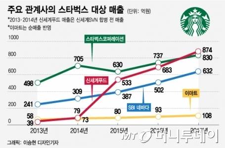 한국에서 스타벅스가 가파른 성장세를 이어가면서 가장 큰 이득을 본 것은 스타벅스 본사다. 스타벅스는 한국에 1999년 첫 발을 내디딘 후 2013년 부터 매년 100~120개 가량 출점하며 급성장했다. 그 덕에 미국 본사인 스타벅스커피 인터내셔널((Starbucks Coffee International, Inc.)을 비롯해 관계사들은 수천억원의 매출과 수익을 거두고 있다. 스타벅스커피 코리아 지분을 신세계 이마트와 미국 본사가 50대 50으로 나눠갖고 있어서다.