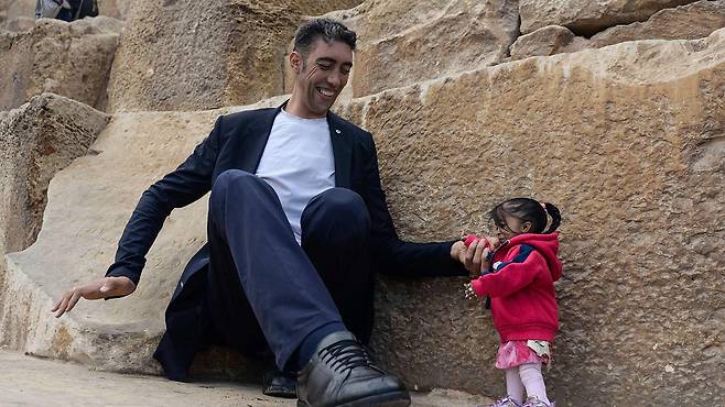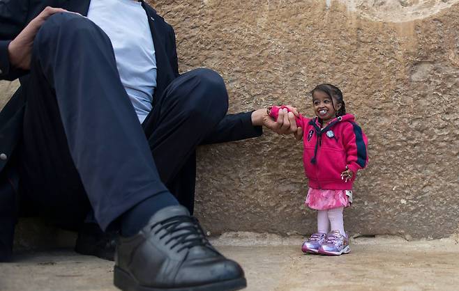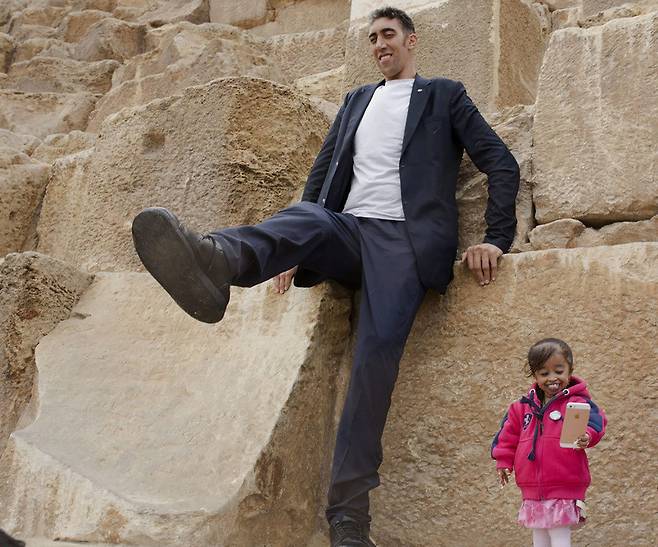 지난 26일(현지 시각) 술탄과 조티는 이집트 관광진흥협회 초청으로 이집트 카이로를 함께 방문했다. 두 사람의 키 차이는 무려 약 188cm에 달한다.