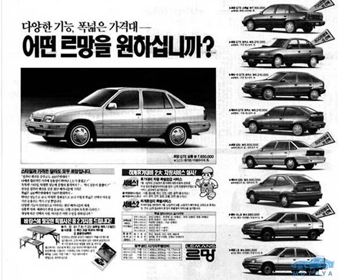 이 당시 등장한 소형차들은 모두 그 시대를 대표하는 차종들로 남은, 진정 특별한 자동차들이다. 그 중에서도 구 대우자동차의 ‘르망(Le Mans)’은 기아자동차 프라이드, 현대자동차 엑센트와 함께 대한민국 소형차 시장의 전성시대를 상징하는 차종 중 하나다.