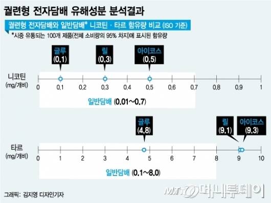 식약처는 7일 '찌는 방식'의 궐련형 전자담배에 대해 "몸에 해롭기는 마찬가지"라는 결론을 내놨다. 특히 시장 1위인 아이코스의 니코틴과 타르 함유량이 타 궐련형 전자담배보다 높다고 발표했다.