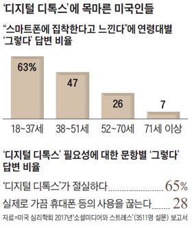 디지털 디톡스 관련 산업의 성장은 디지털 기술, 특히 스마트폰 중독에 대한 반작용이라는 분석이 많다. 미국 심리학회(APA)는 지난해 연구 보고서 '소셜미디어와 스트레스'에서 지속적으로 이메일·소셜네트워크 등을 확인한다는 이들의 스트레스 지수가 그렇지 않은 사람보다 20% 정도 높다고 발표했다. 설문 참가자(3511명) 중 65%가 '내 정신 건강을 위해 디지털 디톡스가 필요하다고 느낀다'고 답해 디지털로부터 자유로운 삶에 대한 갈증이 커지고 있음을 드러냈다.
