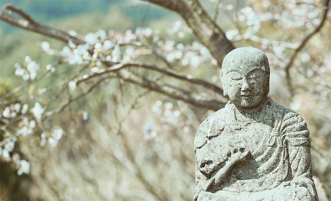 그의 환대는 끝날 기미가 보이지 않았지만 떠나야 했다. 우리도 그도 이미 점심 식사 시간을 훌쩍 넘긴 시간. 맛집을 찾을 겸, 규슈 올레 중 미야마·기요미즈야마 코스도 답사할 겸 미야마시에 갔다. 2년 전 오픈 행사 때와 같은 길이었지만 느낌이 꽤 달랐다. 올레꾼도 많고, 오하나미를 즐기는 현지인들도 많았다. 기요미즈데라 절 너머의 전망소에는 벚꽃이 쉼 없이 날리고 있었다. 하지만 오히려 마음에는 여백이 생기는 것 같았다. 삼층석탑은 꽃에 둘러싸여 더욱 곱고, 계곡 아래 오백 나한상에게도 한 줌 햇볕이 들고 있었다. 아름다운 것만 골라 보기에도 봄날은 짧았다.
